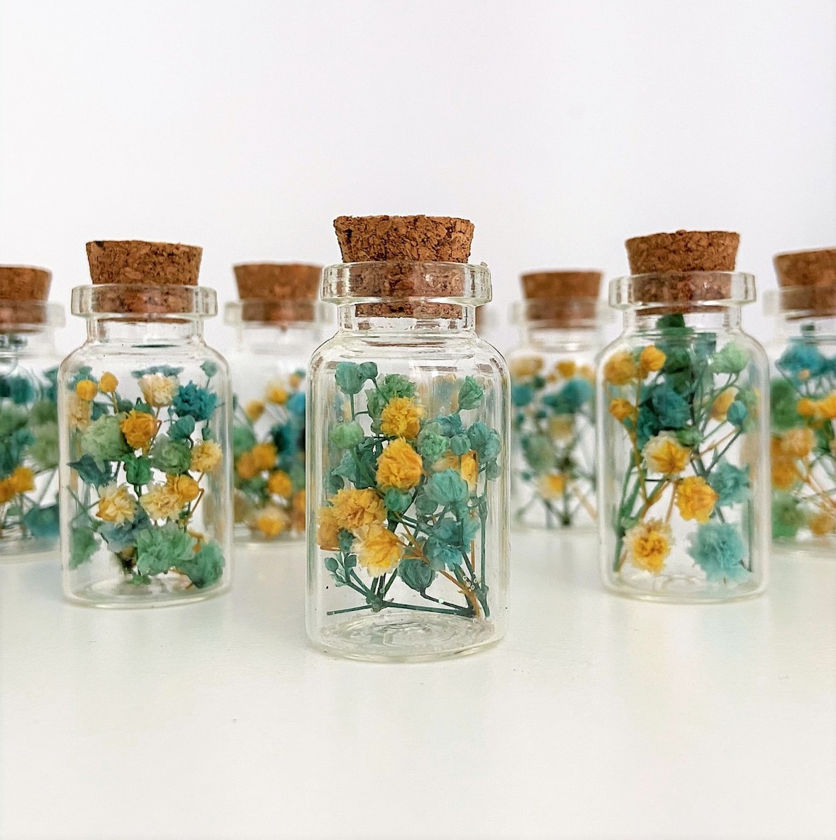 Sticlutele sunt reaizate cu licheni, plante si flori uscate sau stabilizate. Toate sticlutele au snur si mesaj.